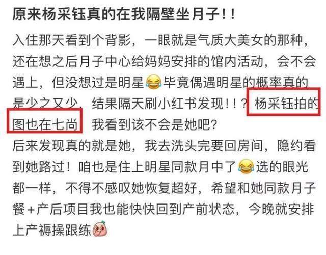 看到杨采钰晒出照片后,有网友留言表示,她与杨采钰同坐一个月子中心,价格是50万。