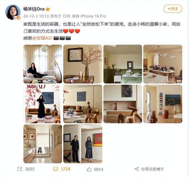 2024年年底,杨采钰在个人社交平台上晒出豪宅内景。真是令人惊讶了,屋里的家具价格不菲,还有名家的画作,有些是天价呢!