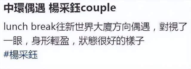 6月底,有一位网友晒出在中国香港中环街头偶遇杨采钰与高富帅老公张向荣一起逛街的视频。